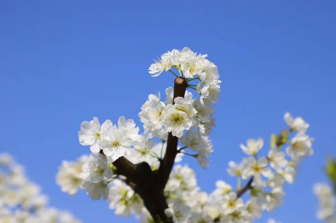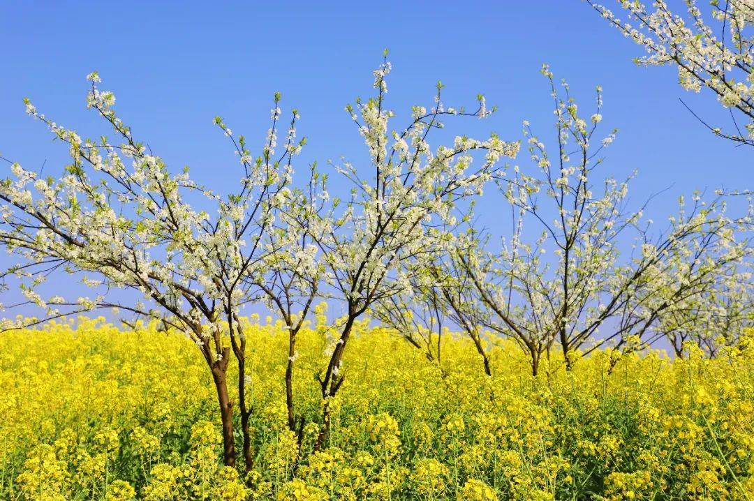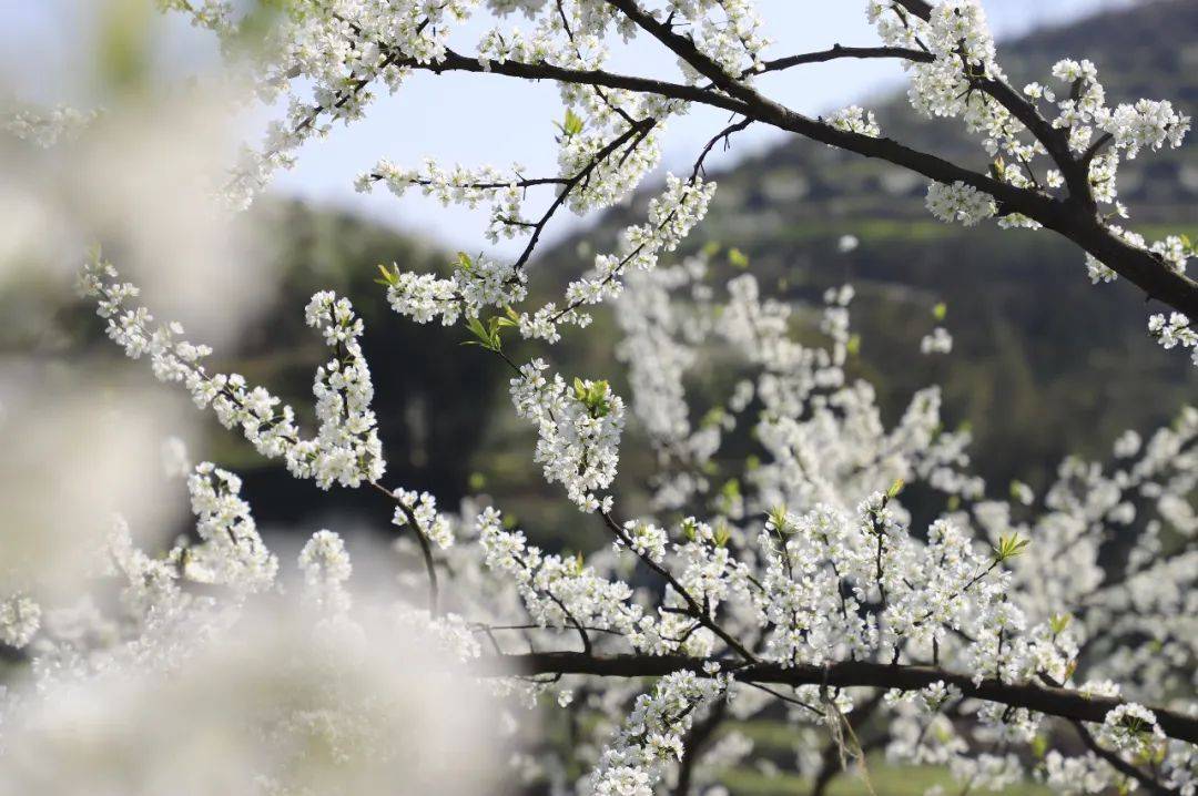 这里不光有油菜花,还有成片的李花。一簇簇李花缀满枝端,染白山间,好意思了春天,醉了心间。