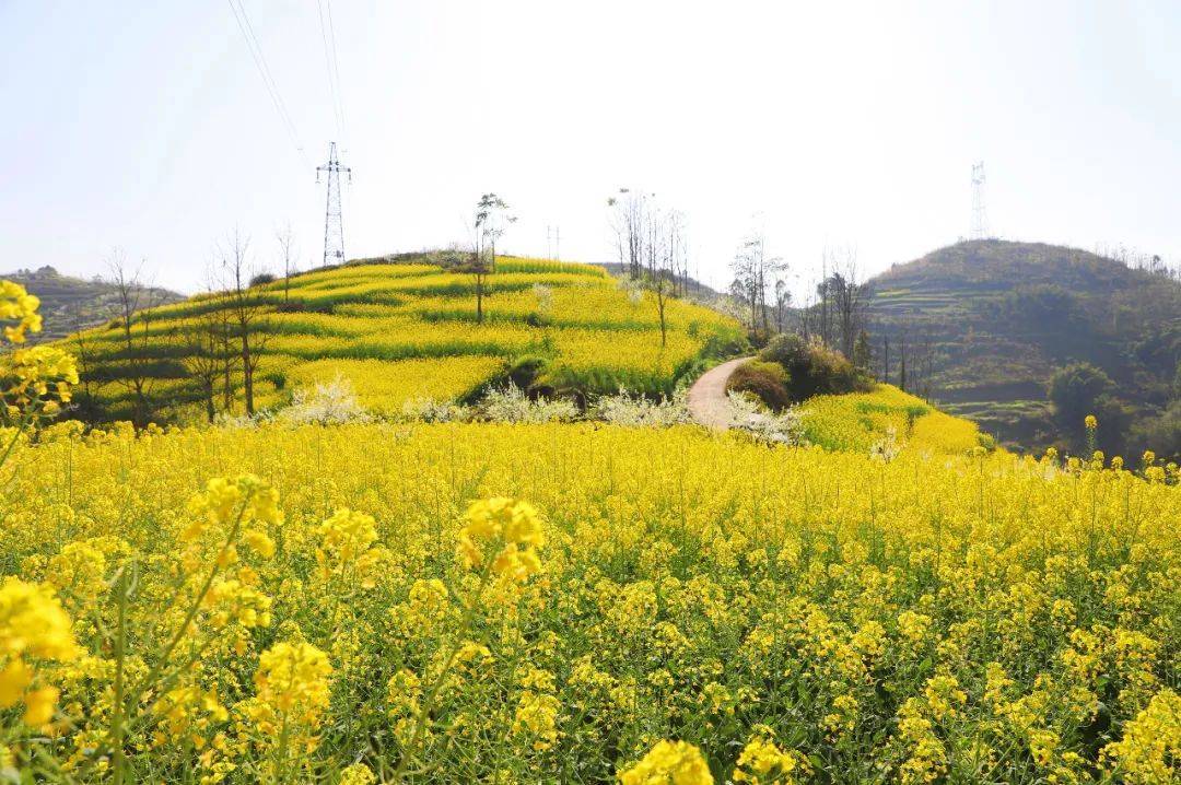 有油菜花的方位王人是一派顾惜春色,春风中的共乐镇福寿村遍野金黄,错杂有致的油菜花田,把山村装饰得相配随和。