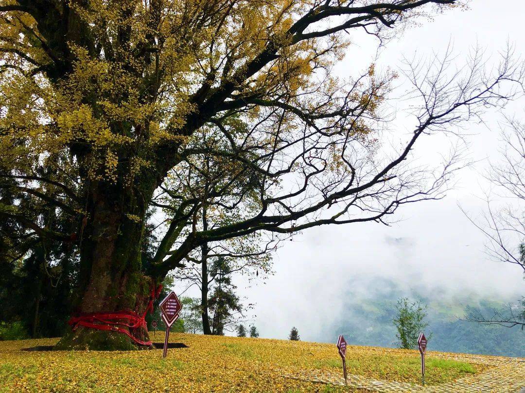 在仙峰苗族乡甘心村,一棵千年银杏树,也恭候和你来一场金色的重逢~