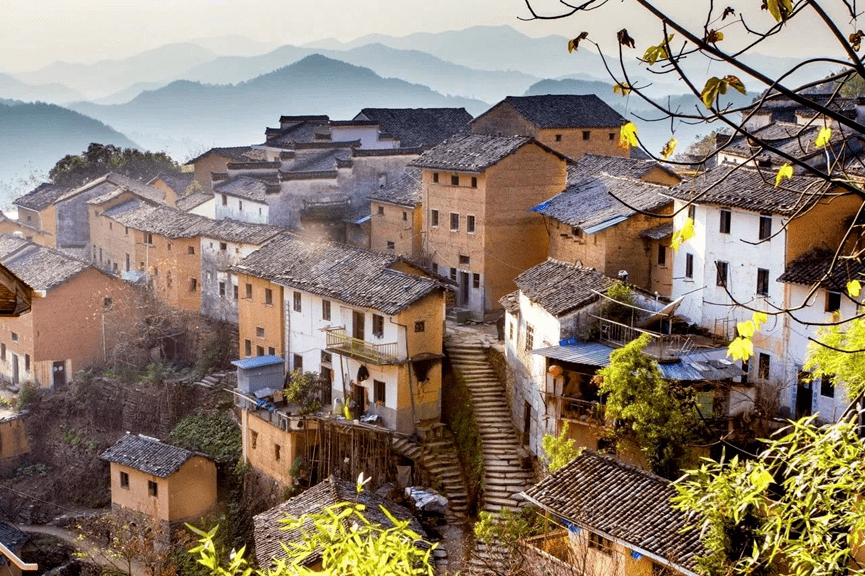从山脚到半山腰,黄黑二色的房屋星罗云布,这些土楼大多为二、三层的房屋,房基用青石砌高,墙体用黄土筑起。受地形的放浪,每个土屋的结构也各不疏通,有长方形、正方形、三角形,还有六角形,互相精致不绝又絮叨有致,具有徽派民居独有的韵律好意思和结构好意思,带着最激烈的乡土好意思感。