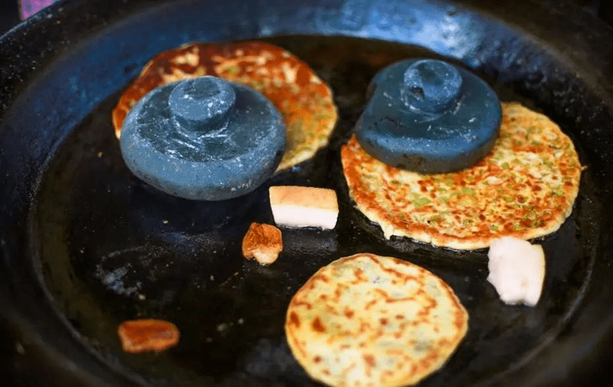 石头馃,徽州各县都有,而以歙县最为出名。在深渡镇,常不错见到一个个馃摊。石头粿的馅料有许多种,常见的有黄豆肉丁、笋丁、韭菜等。馅料用面皮包上,用木碾推擀成圆饼时势,放在平锅中炕烙,每个饼子上遗弃一块石头压着,使其里面油脂渗出,均匀受热。炕至熟透后取出,咬上一口,香气扑鼻,酥香味浓,令东说念主试吃无尽。
